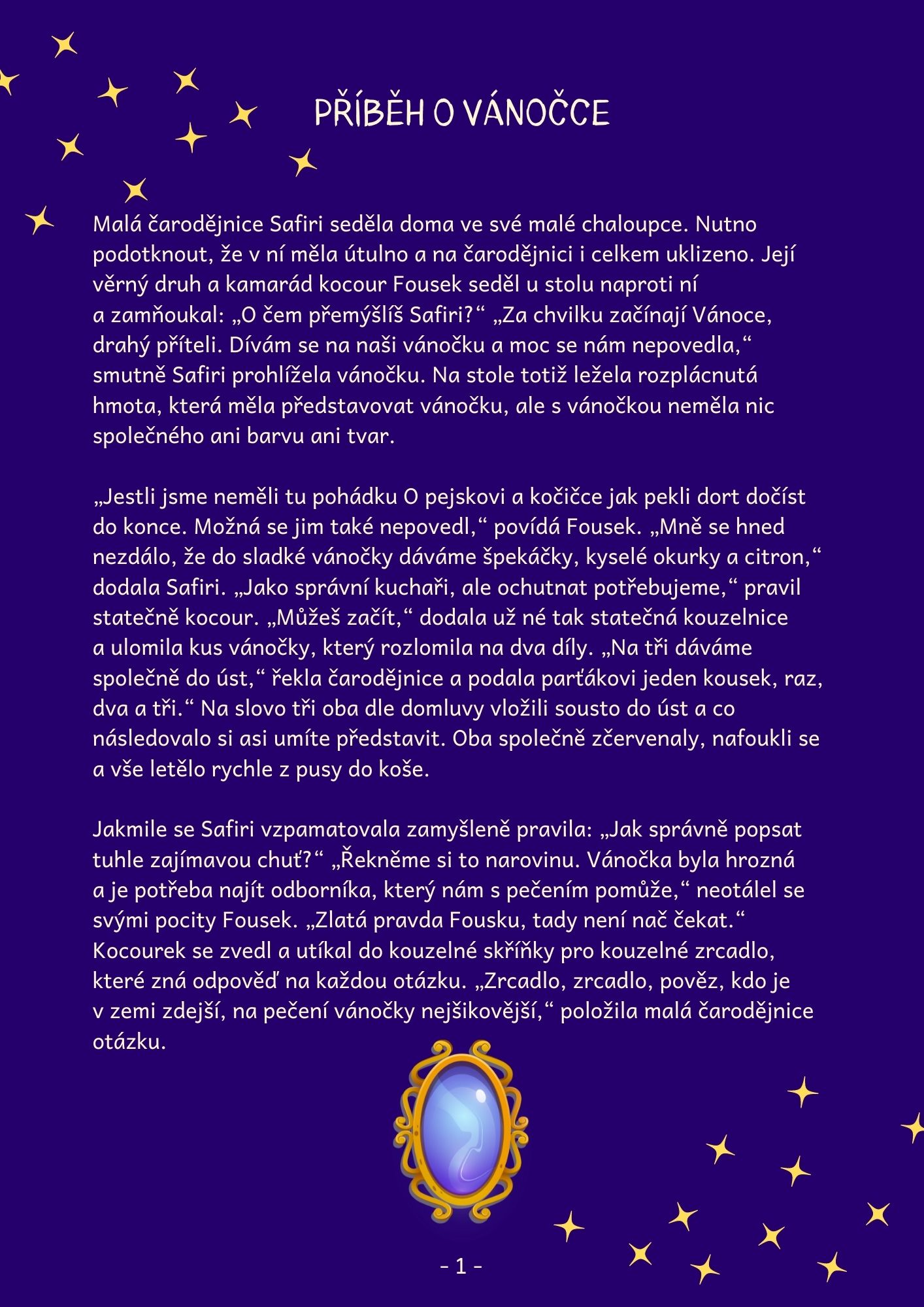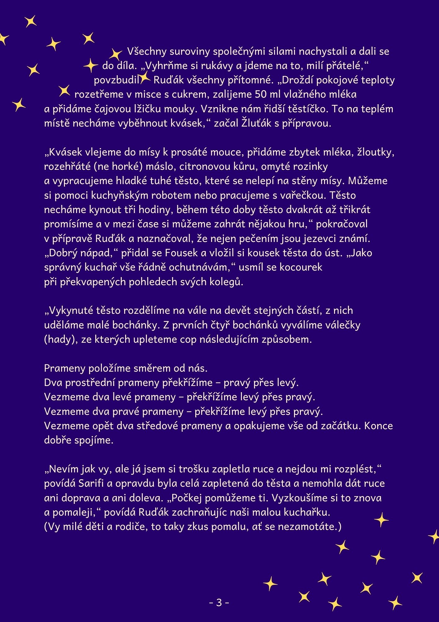 - Součástí je také vánoční luštění. V průběhu příběhu děti získávají postupně jednotlivé suroviny, abyste si i vy mohli úpect tu nejlepší vánočku.