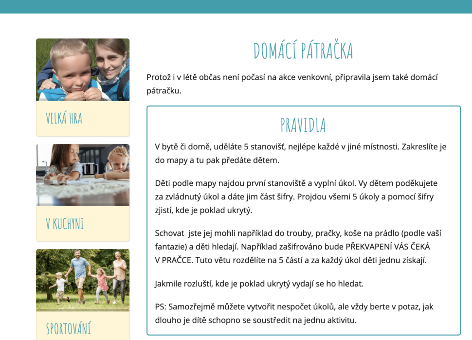 - Nebudeš muset přemýšlet jaký program dětem vymyslet.