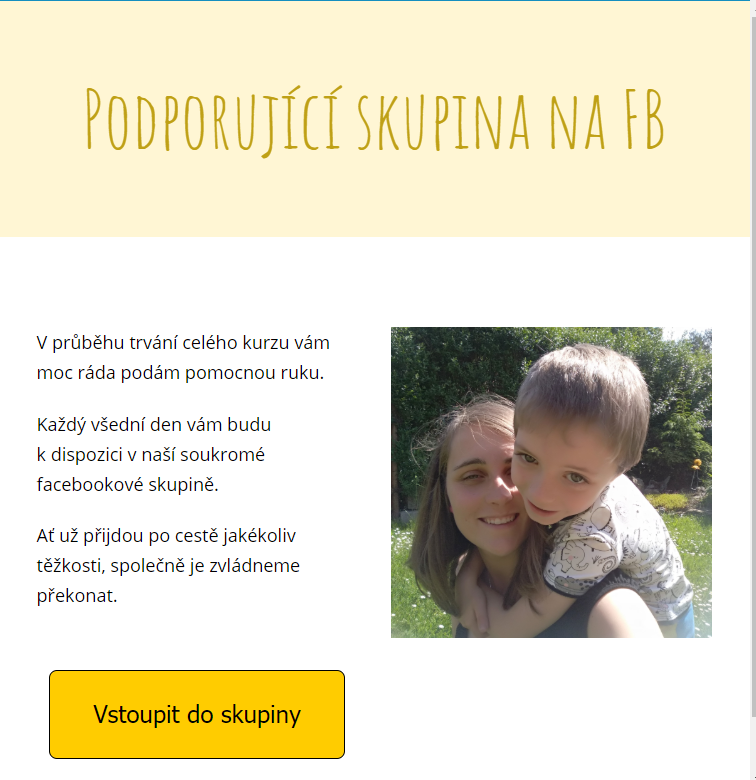Opravdu věřím, že každé z vás během kurzu předám základní principy, které vám ukáží nový pohled. Je však na vás, jak s nimi naložíte. Co je hlavní? Kurz je jen jeden krok na cestě, která nikdy nekončí. Na vztahu k našim dětem pracujeme celý život. - Nemám dostatek trpělivosti a motivace něco se učit a zkoušet.To znám, motivace se někdy těžko hledá. Proto je součástí kurzu i má plná podpora po dobu jeho trvání a akční kroky, díky kterým převedete věci hned do své praxe.